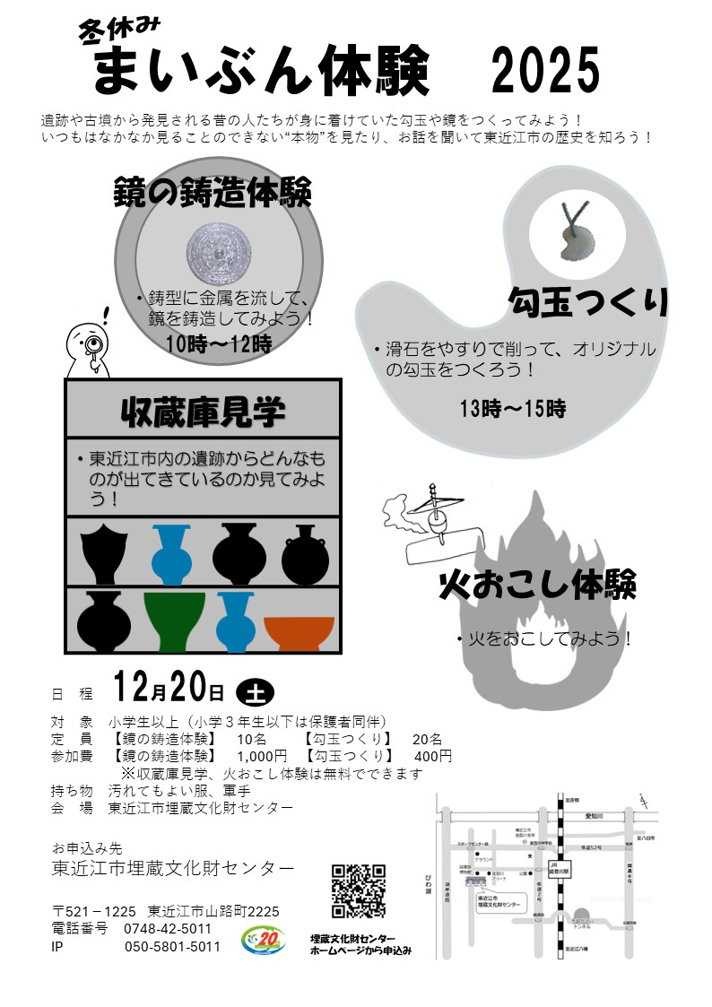東近江市埋蔵文化財センターでは、冬休み期間中に小学生以上を対…