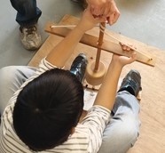 古代の火起こしの説明のあと、マイキリ式による火起こし体験ができます。