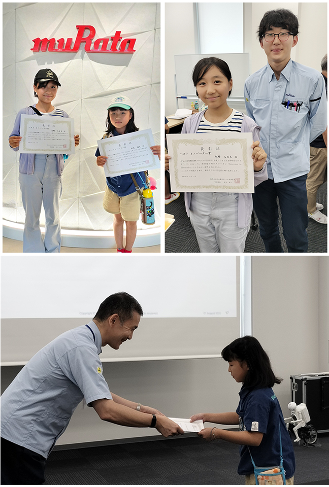 村田製作所八日市事業所から派遣されたアシスタントメンバーにより「ベストイノベーター賞」が決定され、8月1日の工場見学の際に授賞式が行われました。